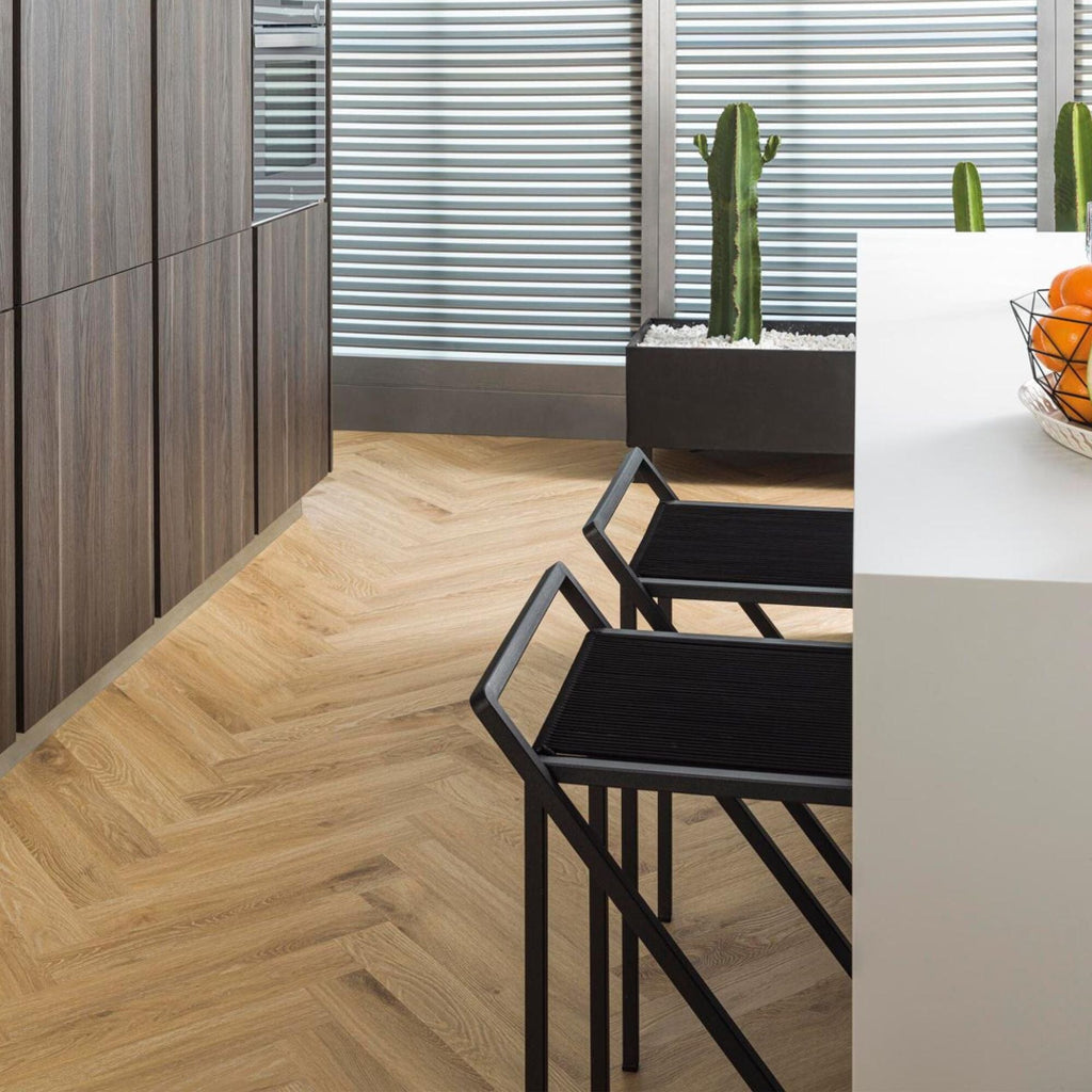 Linkfloor Realm Iberia luxury vinyl flooring from L'Antic Colonial by Porcelanosa. This wood effect luxury vinyl flooring is to be laid in a herringbone design.